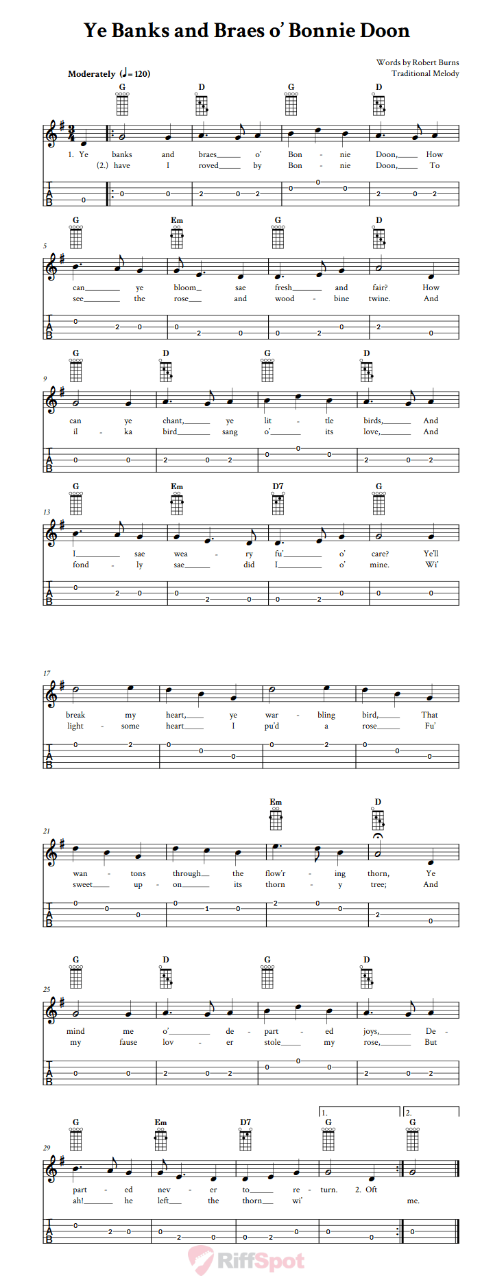 Ye Banks And Braes o' Bonnie Doon Banjo Tab